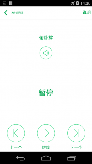 能夠暫停鍛煉并跳到上一個(gè)或者下一個(gè)練習(xí)