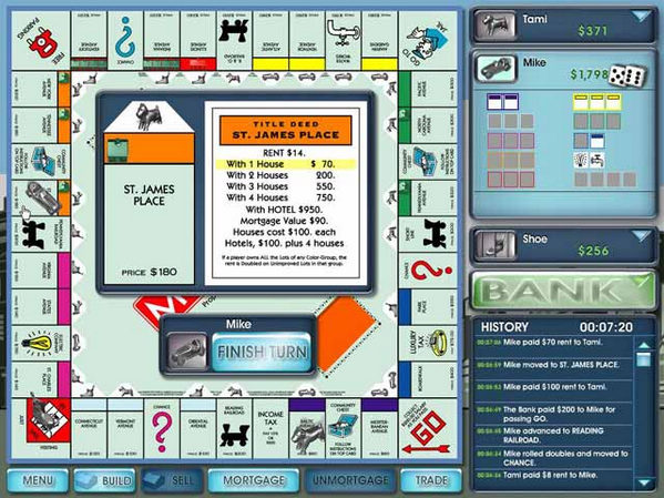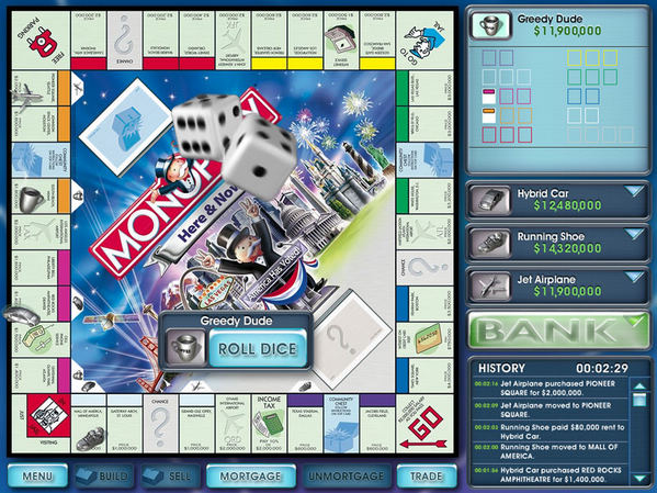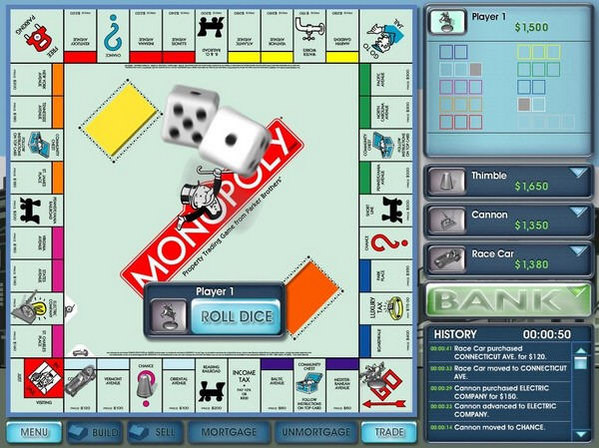 大富豪游戲是一款玩法跟大富翁一樣的休閑益智單機(jī)游戲,通過(guò)擲骰點(diǎn)數(shù)前進(jìn),并有多種道具、卡片使用,能夠觸發(fā)一些“特別事件”。玩家可以通過(guò)購(gòu)買(mǎi)房產(chǎn),收取對(duì)方的路費(fèi)、租金,炒股等多種方式來(lái)導(dǎo)致對(duì)手破產(chǎn),獲得游戲勝利。