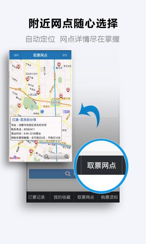 5. 代理網(wǎng)點(diǎn)實(shí)時(shí)查詢,輕松掌握身邊的車票銷售代理點(diǎn)