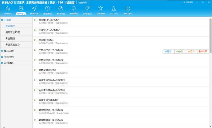 9.涵蓋科目:臨床醫(yī)學、口腔醫(yī)學、輸血技術(shù)、微生物檢驗、、理化檢驗、營養(yǎng)師、主管技師等。