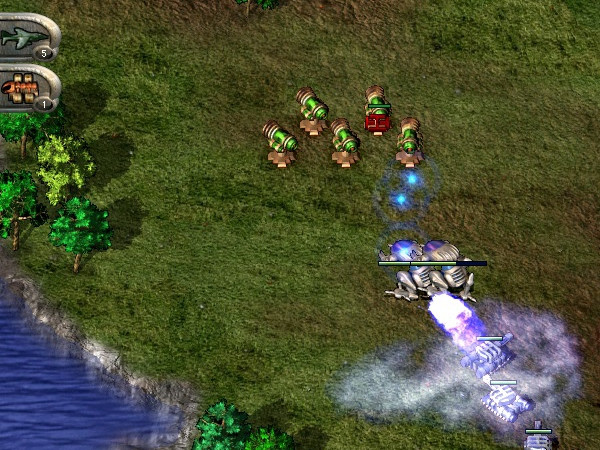 H2E6,這一關(guān)就是一開始狂按快捷鍵1將炮塔一直連接到對面右邊基地下面那個金礦那里(峽谷旁邊的金礦),然后1次過造5個集束火炮,其他造15個以上的防空(要同時防轟炸機和飛碟),右邊那個基地可以在峽谷下面造一個集束火炮打過去的,就這樣滅了一個基地,然后就是靠著雷根一步步的推進,記住要在岸邊造防空,對面的轟炸機會飛過來,把雷根的集結(jié)點到對面的基地,記住看著雷根,別讓他炸自己的炮塔.靠著雷根就可以一步步的把炮塔連接過去.