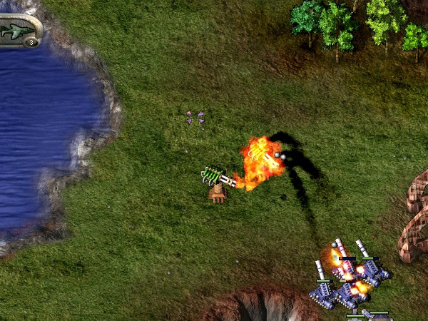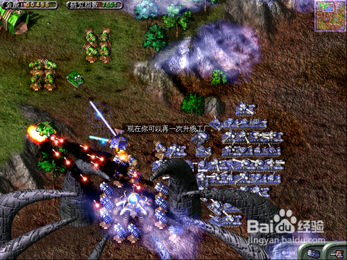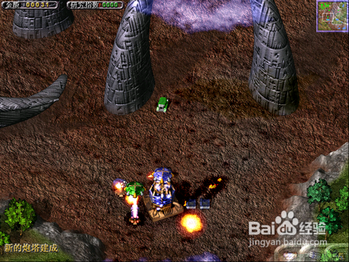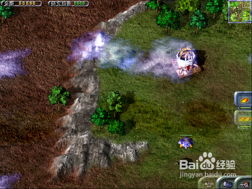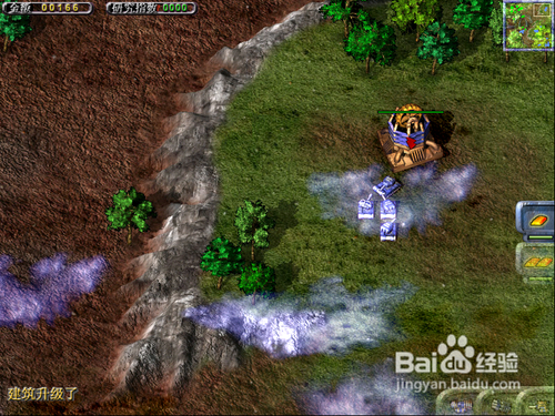 K0D7,這一關(guān)我的打法比較奇特.一開始,飛碟去占中上的一個金礦,然后造3個激光炮還有5-6個防空,然后飛碟直接飛到右邊中間的風機那里占了那個風機,而坦克就直接從路口繞道到中下研究院那里把研究院給占了,之后立刻造炮塔3個和防空,同樣,在占了風機之后立刻造防空,這樣,對面升級不了坦克,飛碟出來就被防空搞定,然后我們的飛碟在慢慢的把其他金礦占完升級完,整個局面就是我的,存到一定的錢,就直接把炮塔造過去占了其中一個坦克場,順便立即升級,后面就順理成章了.