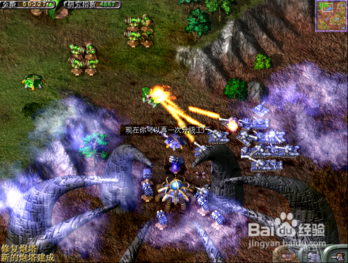防守研究中心、軍工車廠和金幣加工廠。敵人的坦克和飛碟會不斷的來攻擊,要用飛碟保護和維修,等金幣多了就購買防空炮和離子炮塔,防守在研究中心的周邊,此刻研究中心現(xiàn)在是重點保護對象,因為研究中心離敵人最近,但也要不是的看一看金幣加工廠和軍工車廠,防止敵人偷襲。