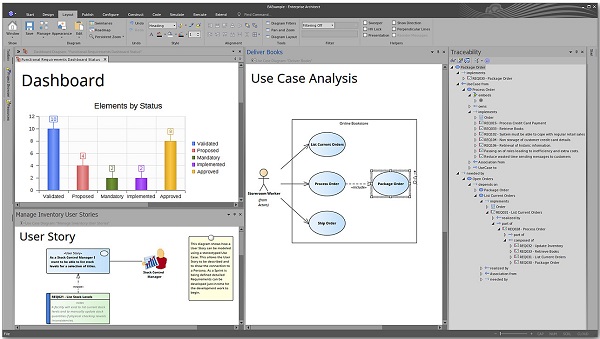 4.1EnterpriseArchitect提供從需求,分析和設(shè)計模型到實施和部署的完整可追溯性。使用EnterpriseArchitect的關(guān)系矩陣和層次視圖等功能,可以在整個生命周期內(nèi)進行有效的驗證,適用和即時影響分析。