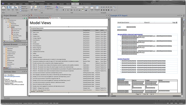 EnterpriseArchitect使用完整的WYSIWYG模板編輯器提供強大的文檔生成和報告工具。使用所需信息為您公司或客戶的要求生成詳細的報告!