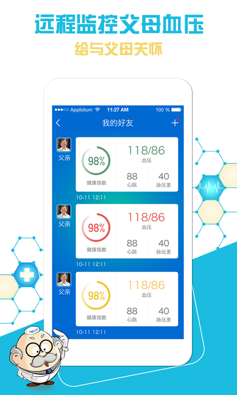 『子女監(jiān)測』數(shù)據(jù)云端自動(dòng)同步,加好友后即使出門在外也能隨時(shí)查看家人的血壓測量數(shù)據(jù);