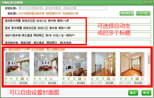 1.秒錄房源時(shí),復(fù)制圖片完全去除網(wǎng)站logo水印。高清優(yōu)質(zhì)圖片可以愉快的復(fù)制使用。?2.秒錄房源結(jié)束后,會(huì)自動(dòng)跳出一個(gè)對(duì)話框,提示你修改標(biāo)題與封面圖,用以區(qū)別原有的房源。并且,小蜜書還貼心的提供了一些房源標(biāo)題,以供經(jīng)紀(jì)人選擇。
