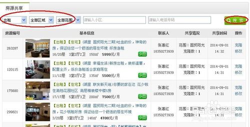 上面的輸入框中可以輸入想要克隆的房源類型等,通過(guò)搜索按鈕就可以直接獲得您想要的房源信息,免去經(jīng)紀(jì)人在信息量大的時(shí)候查找信息的麻煩。如圖