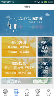 2、“預(yù)約”中匯聚大量健康相關(guān)專家信息及檢查檢測相關(guān)技術(shù)信息。本信息平臺為用戶提供的信息服務(wù),包括檢索查詢專家一般信息,專業(yè)特長信息,并提供輔助的預(yù)約咨詢、預(yù)約檢查服務(wù)。預(yù)約咨詢包括預(yù)約電話咨詢、圖文咨詢、視頻咨詢及線下面對面咨詢,再由專家通過其它即時通訊系統(tǒng)提供咨詢服務(wù)。預(yù)約檢查包括預(yù)約影像檢查和預(yù)約精準檢測服務(wù)。