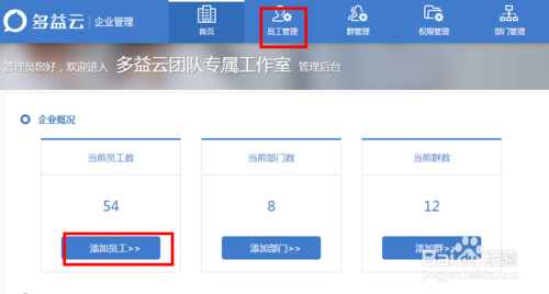 3、點(diǎn)擊上方“員工管理”或者下方“添加員工”,進(jìn)入到員工管理界面