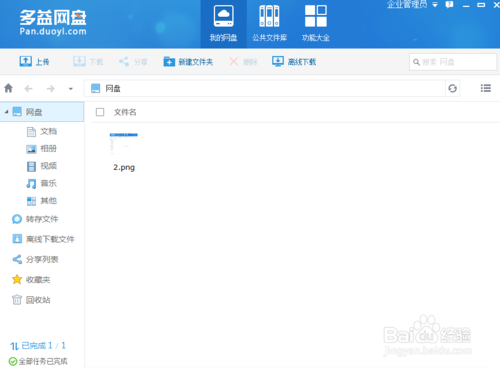 5、上傳后你可以在網(wǎng)盤(pán)界面看到自己剛剛上傳成功的文件如圖。