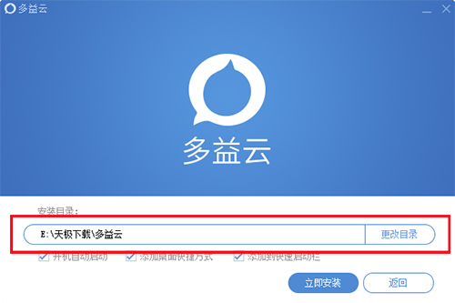 2、點(diǎn)擊【更改目錄】可自定義安裝文件位置,單擊【立即安裝】