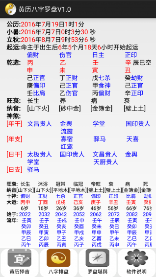 1.6版在排盤結(jié)果后增加了自助分析八字的按鈕;