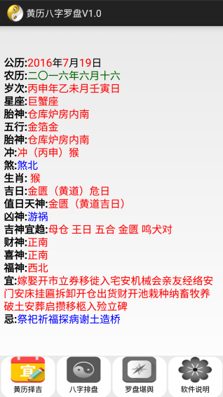 黃歷八字羅盤app旨在為廣大傳統(tǒng)文化和預(yù)測文化愛好者提供一個全面、準確、方便、實用的手機工具。5M包含了八字排盤、黃歷擇吉、羅盤堪輿等實用功能。