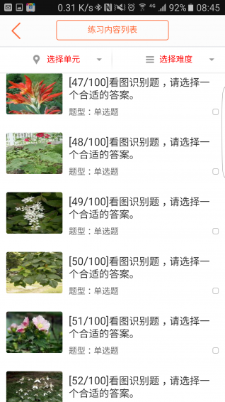 更新了本地?cái)?shù)據(jù)庫,建議先刪除原APP,再重新下載更新。本軟件主要用于學(xué)習(xí)、測試相關(guān)知識(shí)應(yīng)用技能。本版主要功能:園藝植物的識(shí)別技能相關(guān)的自學(xué)、練習(xí)、測試等等。有關(guān)功能還在更新中,請關(guān)注。
