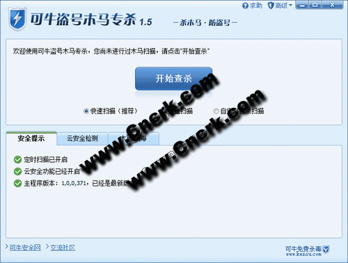 可牛盜號木馬專殺工具 V1.5 簡體中文綠色免費(fèi)版 《可牛盜號木馬專殺》是專為網(wǎng)游防盜號量身打造,完全免費(fèi)的木馬專殺軟件;基于100%的可牛云查殺技術(shù),5分鐘內(nèi)快速識別最新盜號木馬;二次檢測只需數(shù)秒;體積輕巧,不需要進(jìn)行安裝,更無安裝重啟的擔(dān)憂,下載僅需3-5秒;100%兼容所有殺毒軟件,適合用戶快速下載使用,無論您是在網(wǎng)吧,家中,公司都能夠輕輕松松獲得超一流的盜號木馬防護(hù)功能!