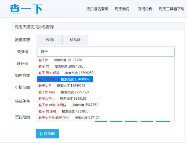查一下淘寶工具箱對淘寶天貓店鋪銷售數(shù)據(jù)查詢分析并對結(jié)果排序,支持PC端和無線端寶貝位置查詢,淘寶寶貝排名查詢,關(guān)鍵詞查詢,查一下淘寶工具箱內(nèi)置谷歌瀏覽器方便查看結(jié)果數(shù)據(jù)。【使用方法】