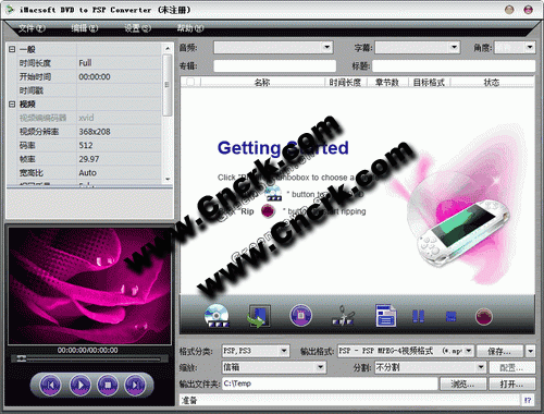 iMacsoft DVD to PSP Converter V2.0.1 多國語言綠色特別版 iMacsoft DVD to PSP Converter是一款強大且易于使用的DVD到PSP轉(zhuǎn)換軟件??梢赞D(zhuǎn)換DVD到PSP,MP4,H.264/MPEG-4 AVC,PS3游戲機,MPEG - 4,PS3,H.264/MPEG-4 AVC,PS3 MP3, AAC等。各種設(shè)置:自定義文件大小,分割輸出文件,選擇音軌和字幕,擷取DVD音頻視頻剪輯和調(diào)整像比特率,采樣率,分辨率,幀速率等音頻參數(shù)
