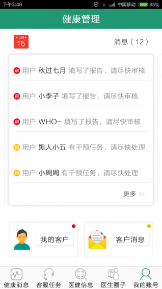 能夠收到患者的各項健康指標的預警情況,了解患者的健康數據更新情況,方便及時提醒患者。