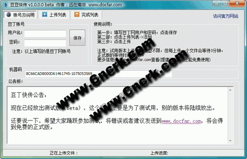 豆豆快傳 V110b 簡(jiǎn)體中文綠色免費(fèi)版 豆豆快傳是一款豆丁網(wǎng)批量上傳軟件,用于可以在不打開(kāi)IE的情況下批量上傳自己的文檔(包括任何官方許可的格式),同時(shí)能夠?yàn)閱蝹€(gè)上傳文檔設(shè)置文檔的價(jià)格、分類(lèi)、標(biāo)簽、簡(jiǎn)介等。上傳速度快,占用資源小,可長(zhǎng)期運(yùn)行。