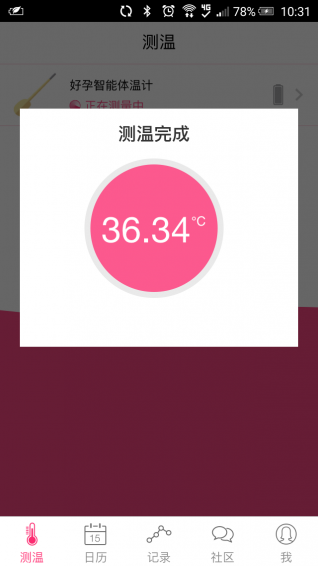 1、實(shí)時(shí)顯示測(cè)量出的體溫?cái)?shù)值。2、自動(dòng)繪制基礎(chǔ)體溫曲線(xiàn)圖并標(biāo)注排卵日、經(jīng)期等。