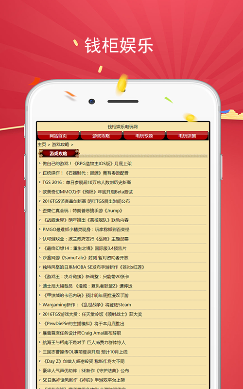 錢柜娛樂手機(jī)版是一款游戲資訊閱讀類手機(jī)平臺。通過錢柜娛樂app玩家可快速便捷的查詢到《錢柜娛樂777》網(wǎng)提供的最新游戲攻略、評測和資訊,是游戲玩家查詢游戲資訊的好幫手。