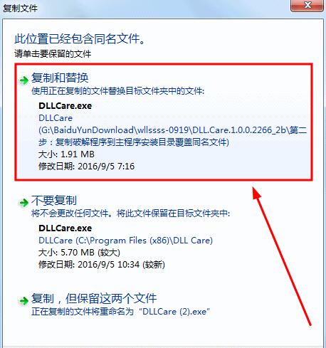3、然后復(fù)制破解文件到主程序安裝目錄覆蓋同名文件即可完成DLLCare破解操作。
