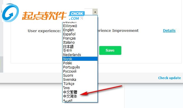 如圖所示,選擇中文以后點擊save就可以了