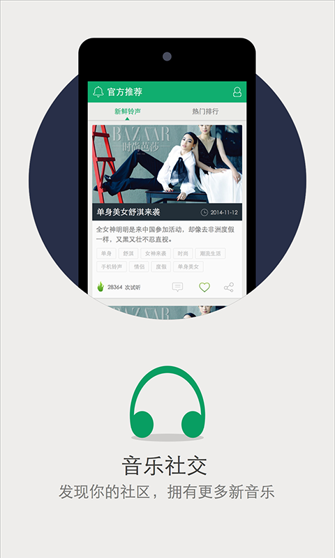 5.官方推薦的新鮮鈴聲和熱門排行鈴聲,讓你的來電鈴聲成為全公交車上的唯一焦點(diǎn)。