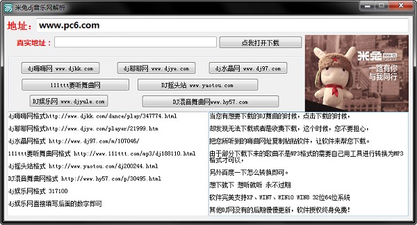 首先打開任意一個DJ音樂網(wǎng),選擇希望下載的音樂網(wǎng)址,復制網(wǎng)站鏈接將網(wǎng)站地址粘貼到米兔DJ音樂網(wǎng)解析器地址欄,點擊對應的網(wǎng)站,隨后點擊下載