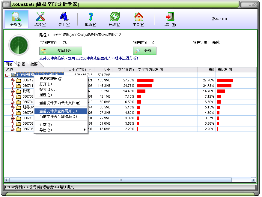 6、系統(tǒng)右鍵關(guān)聯(lián)功能,快速啟動并對目標(biāo)文件夾進(jìn)行分析;