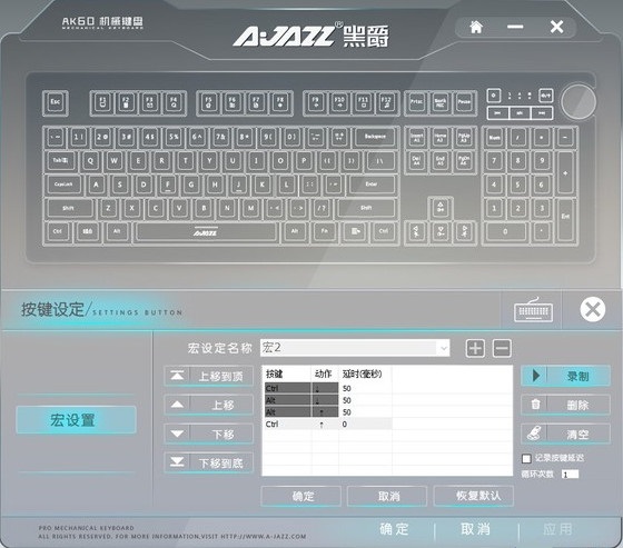 黑爵AK60鍵盤驅(qū)動是一款專為黑爵AK60鍵盤的使用者們所提供的鍵盤專用驅(qū)動裝置軟件。該軟件擁有自定義按鍵界面、背光調(diào)節(jié)設(shè)置、宏錄制設(shè)置等功能。