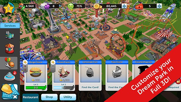 《過山車大亨觸摸版》是由Atari出品的一款策略經營游戲。在游戲中玩家將作為一名過山車主題公園的老板,游戲中將會給予玩家一塊土地,玩家需要在上面將自己的樂園建立起來,從娛樂設施,到周邊的商店,甚至是風景裝飾都將由玩家一手打造,游戲中一共有超過100個不同的設置提供給玩家。而對于這個樂園來說,最重要的莫過于就是巨大刺激的過山車了,而在游戲里玩家通過編輯器可以親自打造過山車的軌道,軌道的材質也是由木制、鐵制和鋼制等等不同的選擇。除了建造之外,公園的日常管理和維護也是十分重要的,玩家可以在管理界面中查看一切信息,讓自己的公園運營的更好。