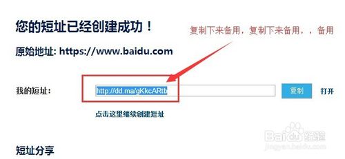 4.點擊創(chuàng)建之后會出現(xiàn)一個網(wǎng)址,這個網(wǎng)址是生成的短址,也是我們網(wǎng)賺要用的短址,復(fù)制下來留存,一會要用。