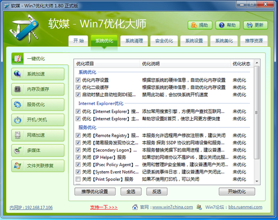 下面筆者給大家重點解析下Windows7優(yōu)化大師的幾大重點優(yōu)化功能