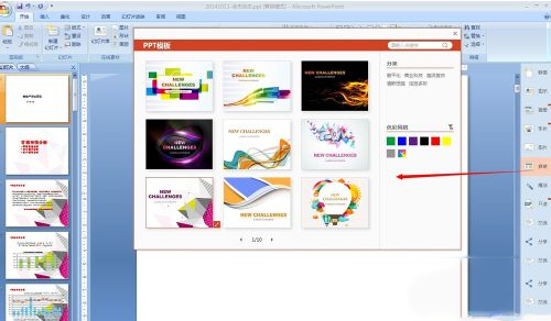 4.點(diǎn)擊側(cè)邊欄”換裝“,先給ppt整體換一個漂亮的模板吧,選中想要的模板,點(diǎn)擊右下角的”套用至文檔“即可,看看ppt是不是整體已經(jīng)大變樣了