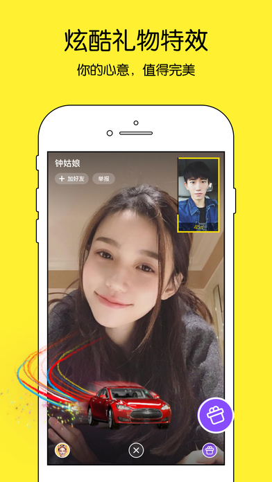 Tiki沒有復雜的功能,操作體驗簡潔流暢。登陸后和同時在線的用戶進行隨機匹配,一對一雙向視頻流,可以和對方進行實時互動交流。觸屏手指下拉,可以馬上結(jié)束當前對話,開始匹配下一個聊天對象。在聊天的過程中,用戶可以互贈禮物,精美的禮物特效讓人眼前一亮,為雙方的互動增加了不少趣味性。值得一提的是,Tiki在視頻美顏功能上做出了巨大的努力,效果堪比國內(nèi)頂級的美顏相機。