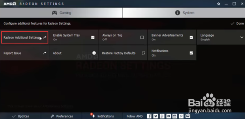 3、進(jìn)入到AMD顯卡的參數(shù)設(shè)置頁(yè)面,我們可以看到非常多的選項(xiàng),我們選擇第一個(gè)“Radeon Additional Settings”,進(jìn)入到顯卡性能設(shè)置。