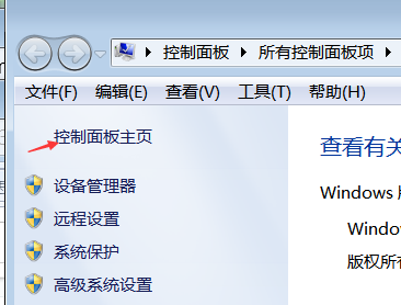 2、選擇“屬性”進(jìn)入后點(diǎn)擊”控制面板主頁(yè)“,如下圖;