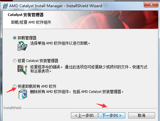 5、單擊顯卡圖標(biāo)的程序后會(huì)進(jìn)入AMD 刪除與修復(fù)的界面,選擇下方的“下一步”進(jìn)入,如下圖;