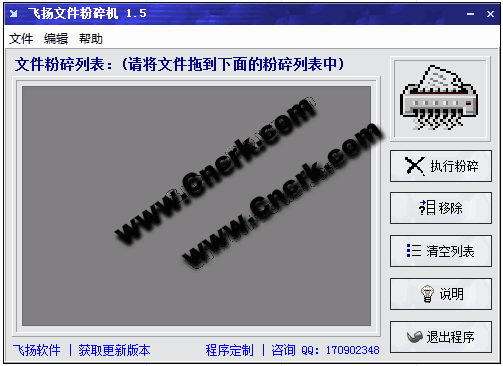 飛揚(yáng)文件粉碎機(jī) V1.5 簡體中文綠色免費版 當(dāng)用戶刪除文件時,其實操作系統(tǒng)并未將該文件從存儲介質(zhì)上真正刪除,而僅僅是在文件分配表中將該文件的相關(guān)信息刪除,并將該文件的存儲空間標(biāo)記為可寫。所以被刪除的文件通常可以用一些文件恢復(fù)工具進(jìn)行恢復(fù)。本工具能夠?qū)⒂脩糁付ǖ奈募豢苫謴?fù)的徹底刪除。如果你不希望自己刪除的文件被他人用文件恢復(fù)工具進(jìn)行恢復(fù),那么請使用本工具來刪除您的重要文檔