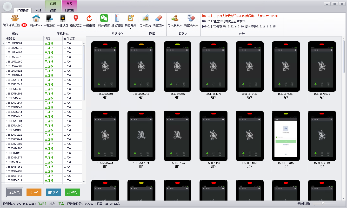 手機(jī)群控系統(tǒng)是一款pc端的手機(jī)控制軟件,可以實現(xiàn)一臺電腦控制上千臺手機(jī),完成微信管理、群發(fā)等多類功能,幫助商家高效的完成手機(jī)營銷,降低運(yùn)營人力成本。