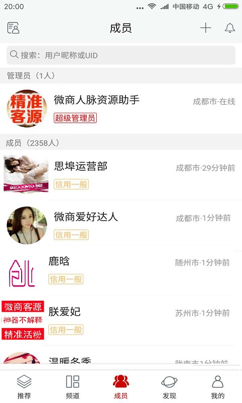 人脈,找人難、銷售難等等難題?人脈客源神器幫你解決。 超級群,好友人脈無限,微營銷。微商時代!無論你是開店做生意,還是做代理,都離不開客戶人脈。1、微商人脈神器展示您的微信二維碼,超高人氣,全國展示,尋找客源,結(jié)交人脈,高速引流。