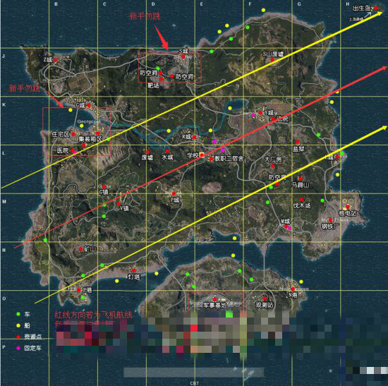 所以,不要提前跳傘,等到島的中間或者末尾再跳。跳傘前看好地圖,右鍵標(biāo)注要去的位置。跳到大城市里,或者飛機(jī)航線比較遠(yuǎn)的位置。