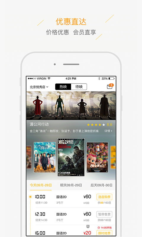DMG國際影城APP是DMG國際影城的自主在線購票平臺,實時查詢影城的排片、票價、優(yōu)惠活動,讓您足不出戶選擇心儀觀影位置。電影周邊、影城活動,周邊商家,盡享你手中。1、自主在線購買電影票