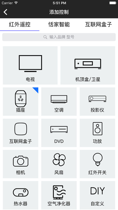 7. 搜索遙控器一步到位:要找遙控器,直接輸入電器品牌/型號(hào)等關(guān)鍵詞搜索即可,一步到位,就是這么簡(jiǎn)單!真正的智能匹配,只有遙控精靈可以做到!