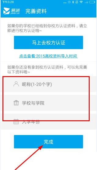4、在這里完成資料填寫,并進(jìn)行校方認(rèn)證,點擊完成就成功注冊的呦~