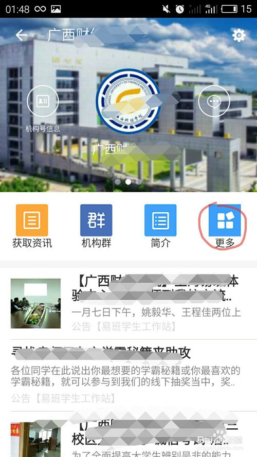 進(jìn)入自己的學(xué)校主頁之后再點擊“更多”