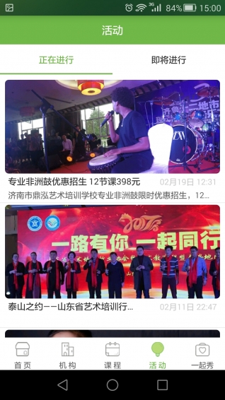 可以在線查看課程的相關(guān)信息,正在進行或即將進行的熱門活動,也可以看到相關(guān)機構(gòu)中的課程或者活動,在線報名,發(fā)布自己的作品等。