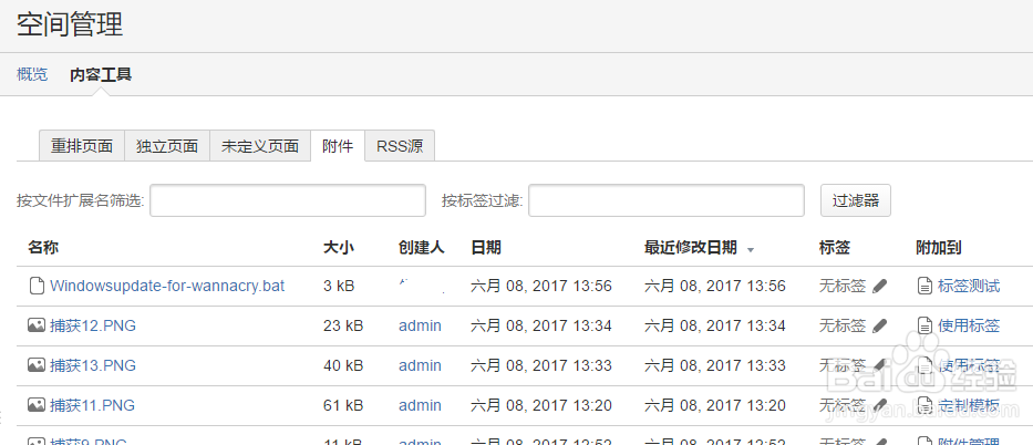 可以查看到空間所有的附件以及可以給各附件添加標簽
